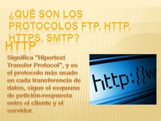 Документ описывает различные протоколы интернет-сетей, включая HTTP, FTP, SMTP, IMAP и POP3. Он предоставляет технические характеристики и объяснения функциональности каждого протокола. Основное внимание уделяется тому, как эти протоколы обеспечивают обмен данными и коммуникацию в интернете.