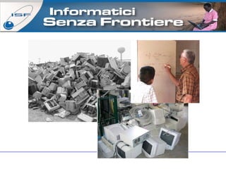 Il documento tratta dell'impegno di 'Informatici Senza Frontiere' nel garantire accesso alle tecnologie per le comunità svantaggiate, con l'obiettivo di connettere villaggi in tutto il mondo a Internet. Sono presentati vari progetti in corso, tra cui la realizzazione di sistemi informatici in ospedali e nella formazione di individui svantaggiati. L'iniziativa nasce dalla volontà di utilizzare competenze e risorse tecnologiche avanzate per ridurre il digital divide e promuovere la democrazia digitale.