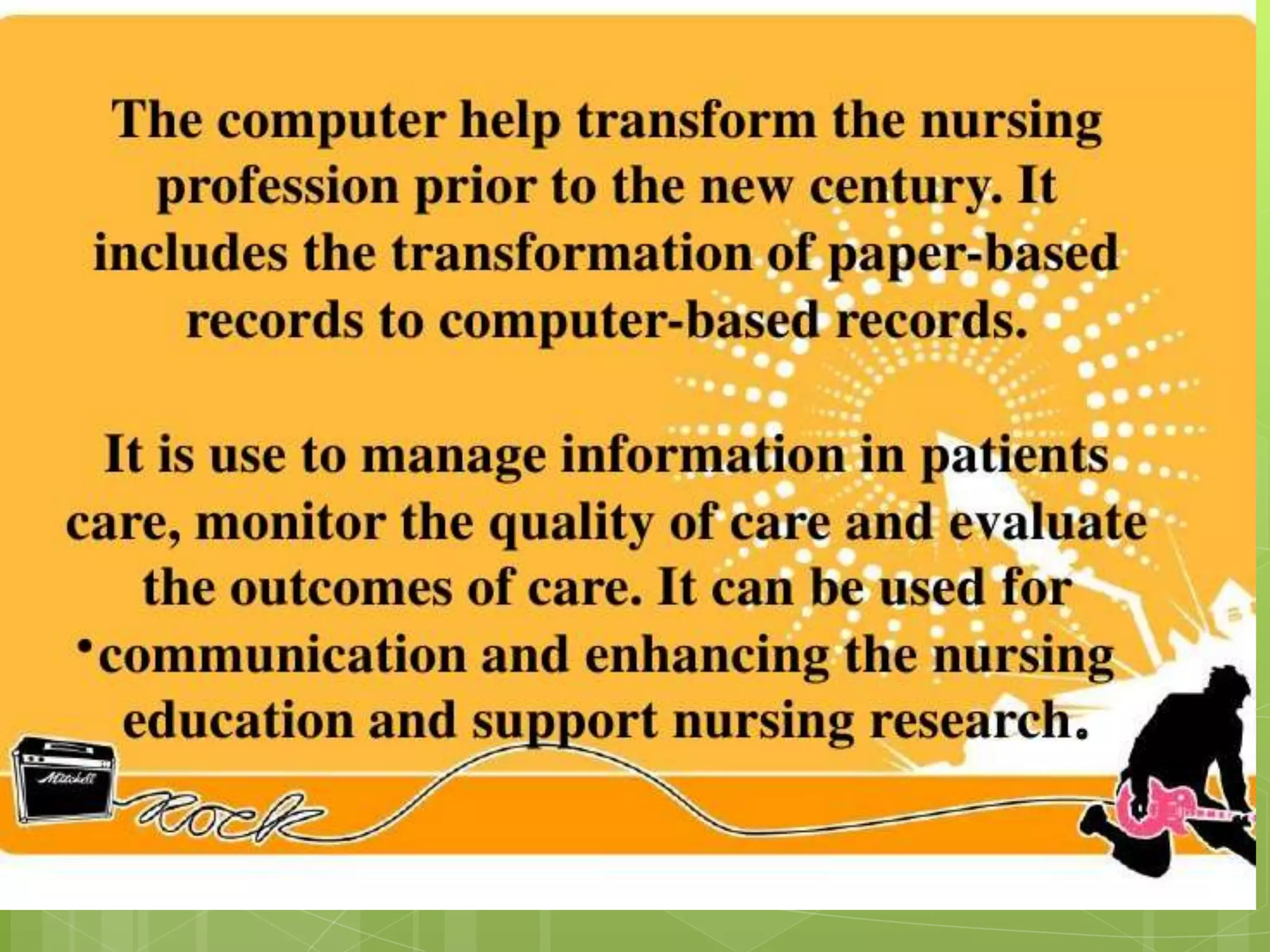 This document discusses the history and applications of electronic health records (EHRs) and computer use in nursing. It addresses: