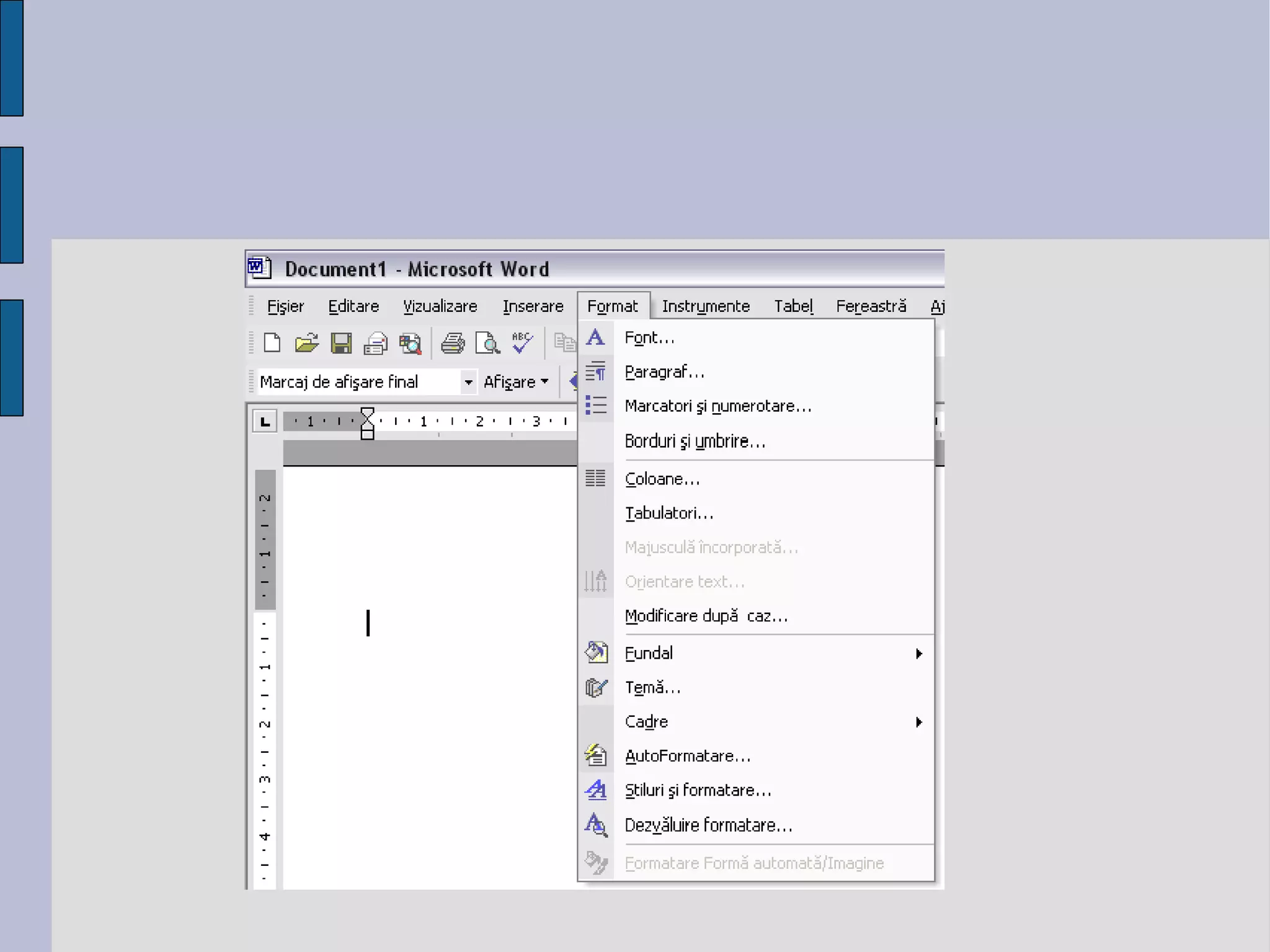 Documentul descrie părțile componente ale ferestrei Microsoft Word, inclusiv bara de titlu, meniurile de sistem și de instrumente, și diverse opțiuni de editare și formatare. Sunt prezentate funcționalitățile esențiale pentru gestionarea documentelor, cum ar fi salvarea, deschiderea, și imprimarea, precum și instrumente pentru editare, inserare și formatare a textului. De asemenea, sunt discutate diverse comenzi rapide și meniu pentru o utilizare eficientă a aplicației.