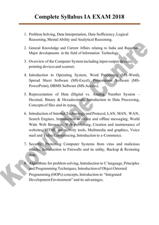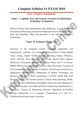 This document outlines the syllabus for the IA EXAM 2018, which includes the following: