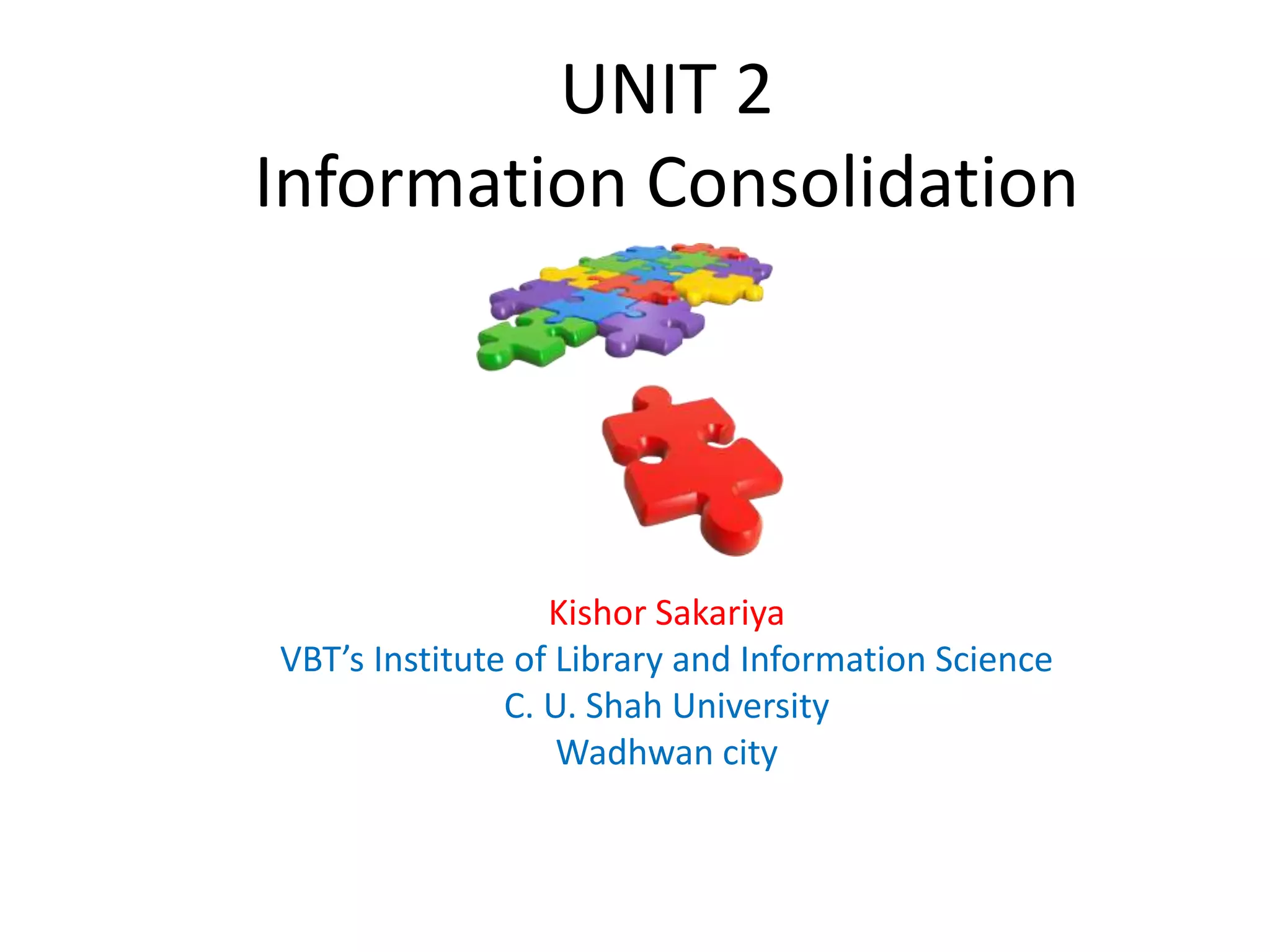 Information consolidation is defined as the process of evaluating and compressing relevant documents to provide users with reliable and concise information. It involves defining responsibility for analyzing documents and packaging information appropriately for users' needs, levels, and time constraints. The benefits of information consolidation include increasing the effectiveness and use of information for various activities, as well as expanding the circle of potential users by providing evaluated and synthesized information. The basic processes involve studying user needs, selecting relevant sources, evaluating and analyzing information, restructuring it into a new whole, and packaging and disseminating it to encourage use.