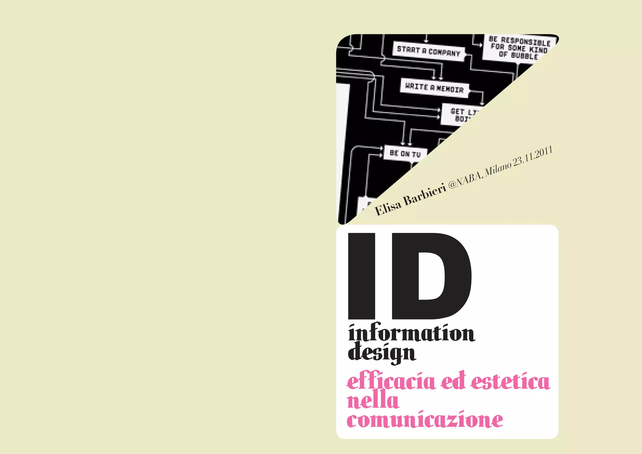 Il documento esplora l'information design come strumento per tradurre dati complessi in informazioni significative attraverso vari mezzi, come mappe e brochure. Discutendo le caratteristiche fondamentali di un buon design informativo, enfatizza l'importanza di un approccio orientato al destinatario e l'uso di elementi grafici. Inoltre, il testo menziona significativi studiosi e strumenti grafici utili nella creazione di rappresentazioni informative.