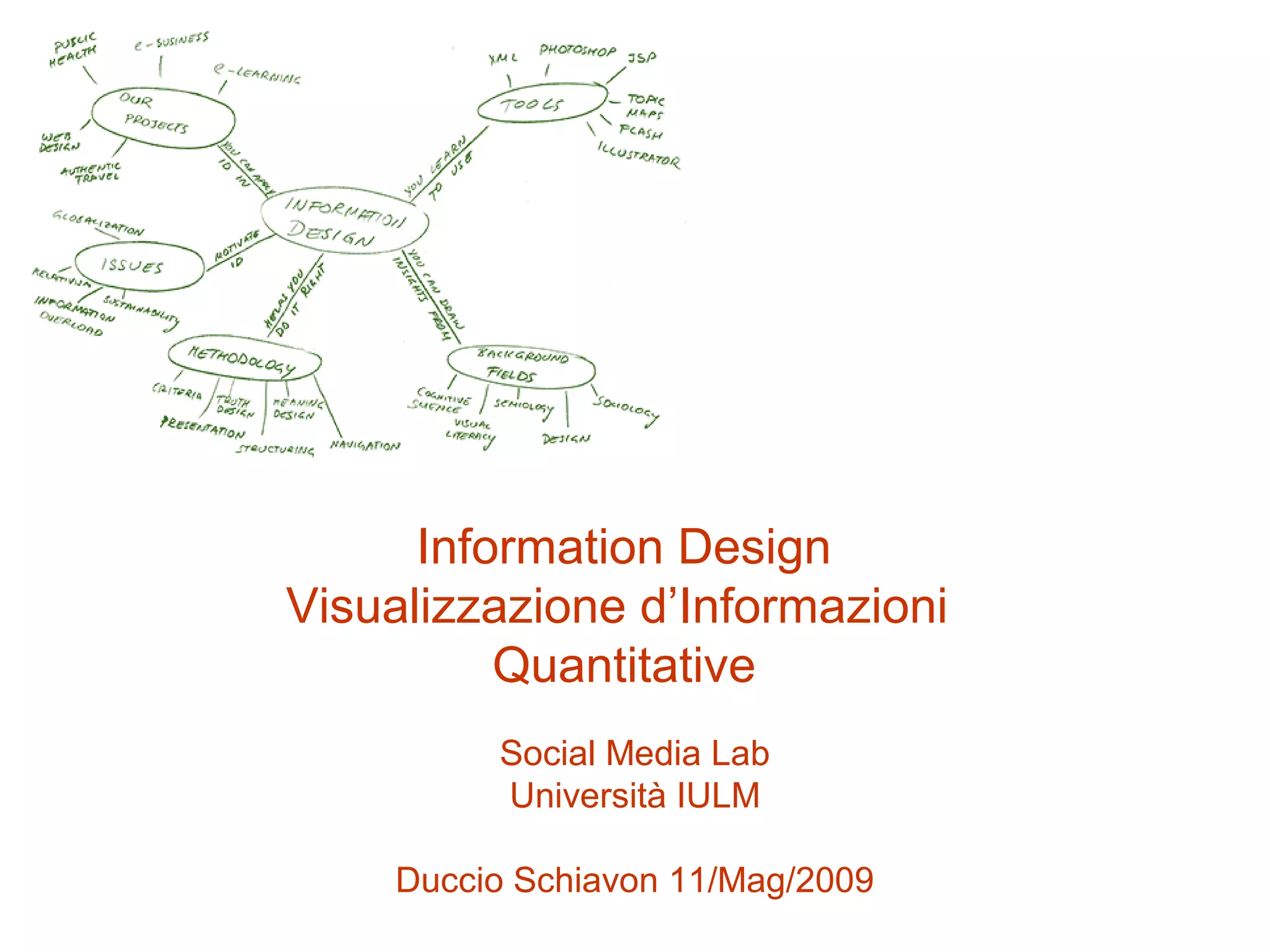 Il documento esplora il concetto di information design, enfatizzando l'importanza di utilizzare simboli, immagini e grafica per semplificare e rendere accessibili informazioni complesse. Attraverso esempi pratici, il testo dimostra come le rappresentazioni grafiche possano comunicare in modo più efficace rispetto ai dati grezzi, aiutando nell'analisi e nella pianificazione di strategie. Vengono inoltre forniti suggerimenti su come progettare rappresentazioni visive efficaci, tenendo conto della natura del pubblico e del messaggio da trasmettere.