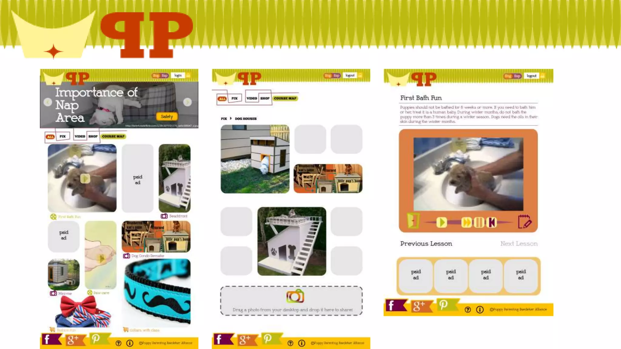 The document outlines a strategy for a website aimed at new puppy parents, created by Stacy Brady and her daughters. It details the site's objectives, user demographics, functionality, and design specifications to provide an engaging and informative online resource for puppy care. The website includes features like secure user login, multimedia content, and a rewarding completion certificate.