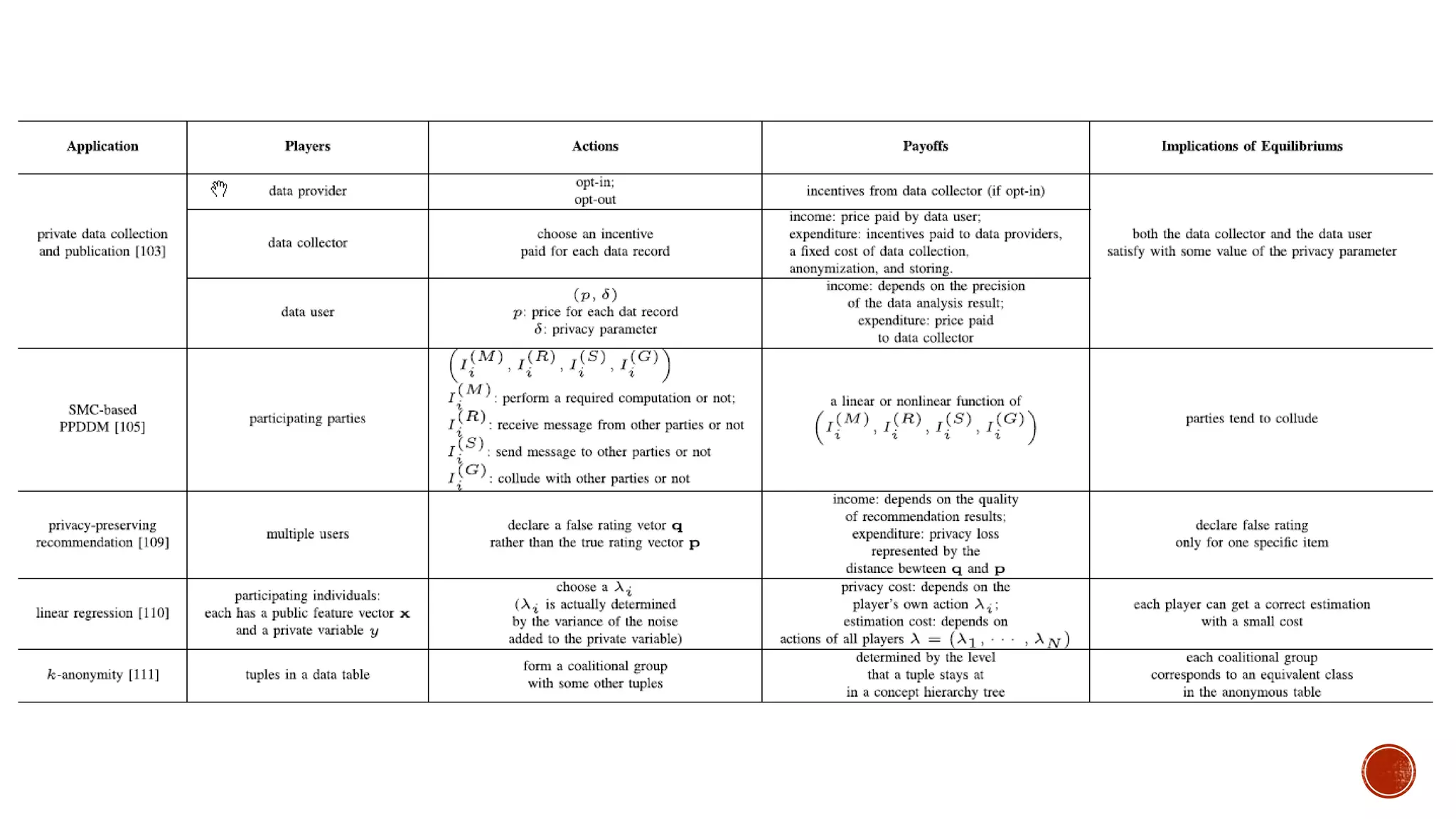 This document discusses the roles involved in data mining processes and privacy concerns. It describes the roles of data provider, data collector, data miner, and decision maker. For each role, it outlines their privacy concerns and approaches that can be used to address those concerns, such as limiting data access, anonymization techniques, and secure multi-party computation. The goal of privacy-preserving data mining is to protect sensitive information while still allowing for useful knowledge discovery from data.
