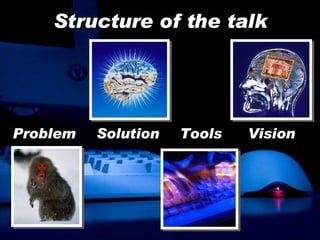 The document discusses strategies and tools for enhancing human intelligence through the use of information technologies. It proposes capturing all data, using systems like GTD to manage tasks and commitments, and mapping one's mind. The goal is to merge human thinking with artificial intelligence by adopting software-inspired strategies and eventually integrating with machines through technologies like brain-computer interfaces.