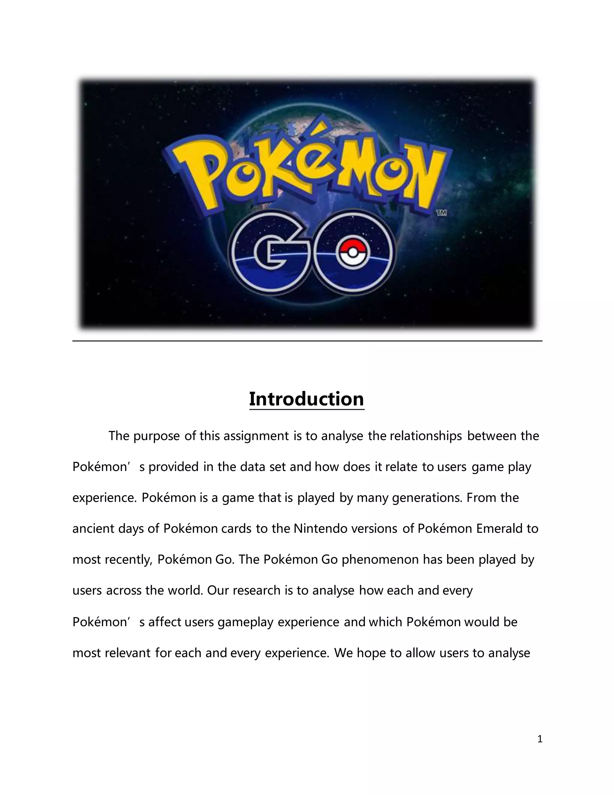 The document analyzes the relationships between various Pokémon types, their attributes, and how they impact user gameplay experiences across different generations. Key findings include the dominance of water-type Pokémon, the significance of special attack and speed across generations, and the strategic selection of Pokémon based on HP and attack ranges. Ultimately, the report emphasizes the uniqueness of each Pokémon and their importance in enhancing the gameplay experience, particularly in Pokémon Go.
