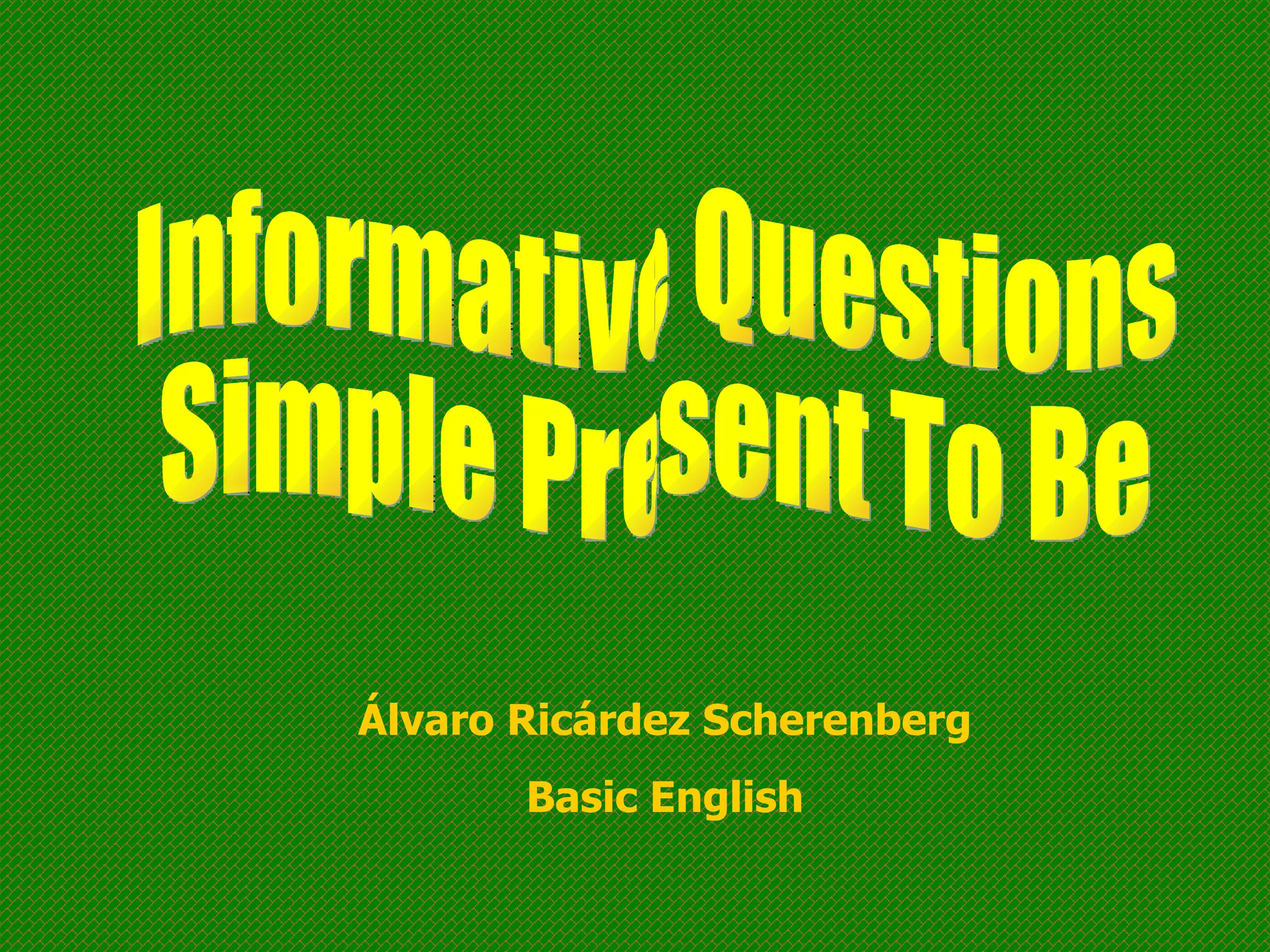 The document provides examples of simple present questions using interrogative words like who, what, when, where, why, and how. It shows how to form questions using these words followed by the verb "to be" and the subject. Examples are given of questions using both singular and plural subjects. The document also demonstrates choosing between "is" and "are" depending on whether the subject is singular or plural.