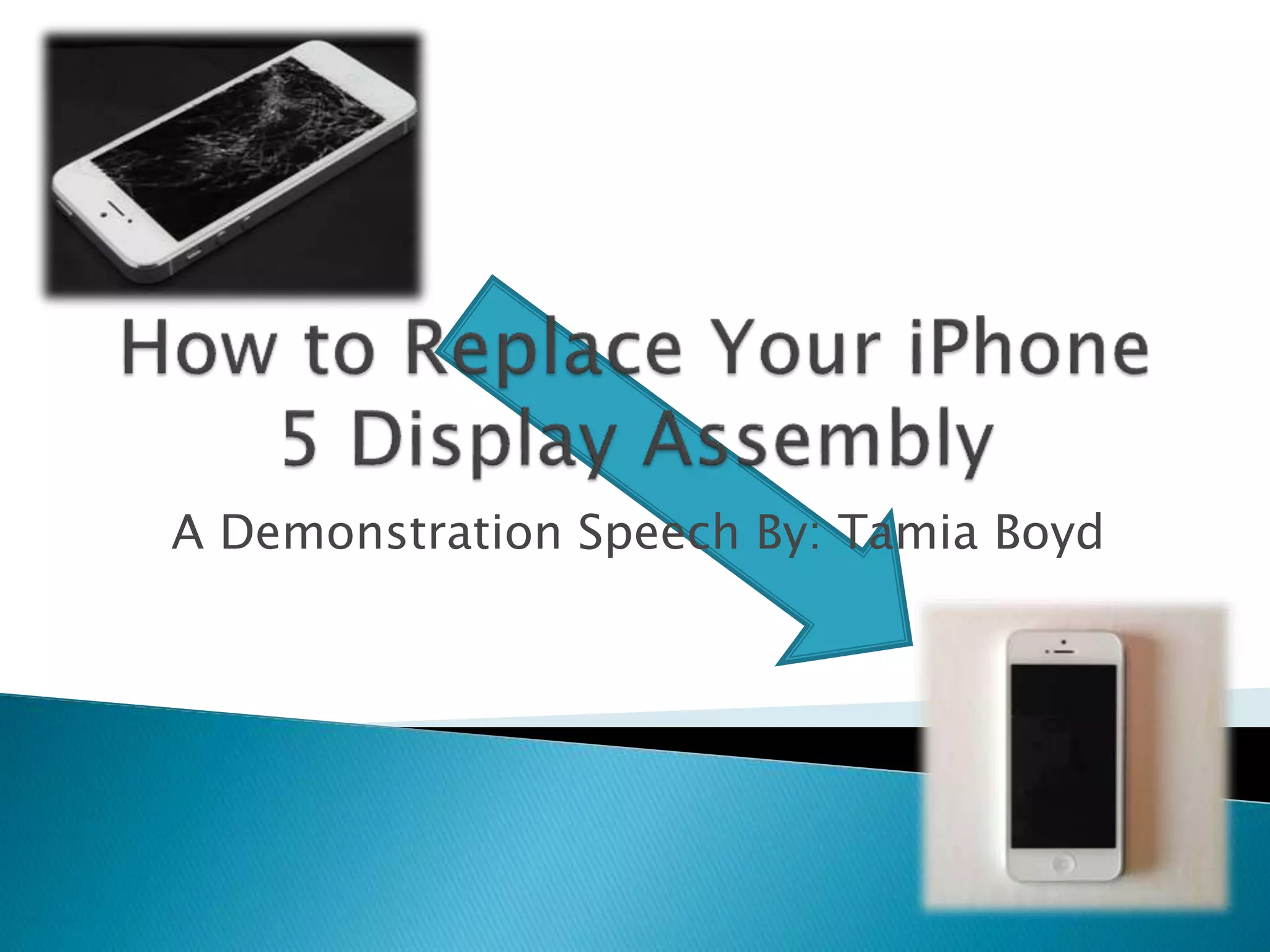 This document provides step-by-step instructions for replacing a cracked iPhone display at home. It begins by listing the materials and tools needed, including a new display assembly, pentalobe screwdriver, suction cup, and plastic pry tools. The instructions then detail each step to disassemble the iPhone housing, disconnect cables from the old display, and install the new display assembly. The process involves removing screws, using suction cups and pry tools to separate components, transferring parts to the new assembly, and reconnecting cables before reassembling the iPhone housing. Proper handling of components is emphasized to avoid damage.