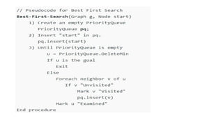 • Thus, it evaluates nodes by using just the heuristic function; that is,