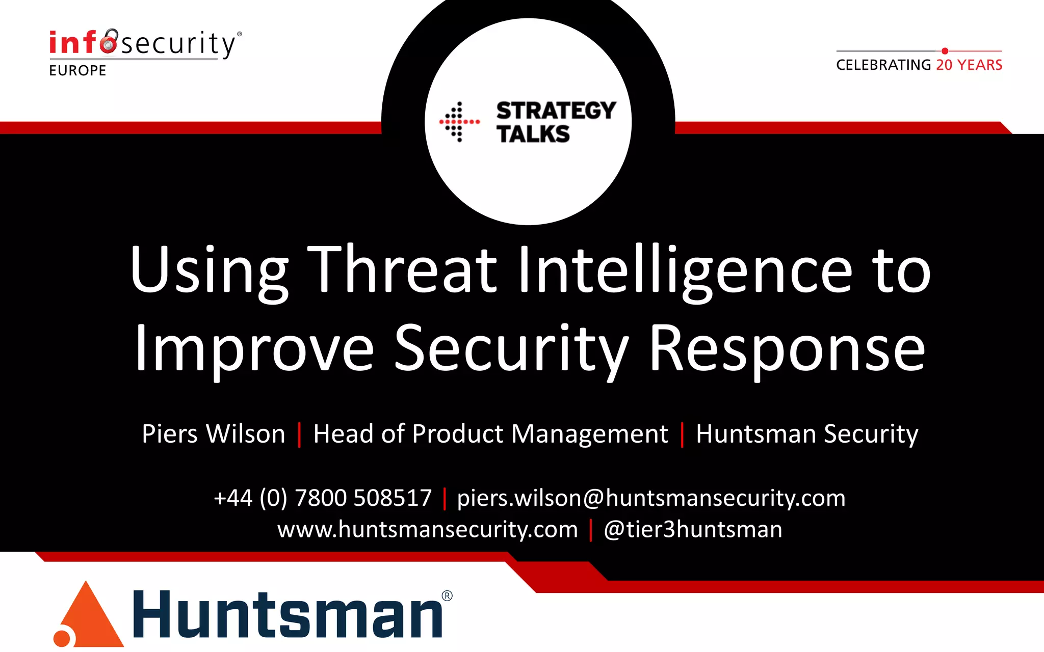 The document discusses the importance of threat intelligence in enhancing security responses, emphasizing that it encompasses both internal and external data sources. It illustrates how organizations, particularly in the defense sector, leverage threat intelligence for real-time alerts and decision-making, while also highlighting the need for automated processes in analyzing network behavior. Ultimately, effective threat intelligence aids in the prompt identification and resolution of cyber threats.