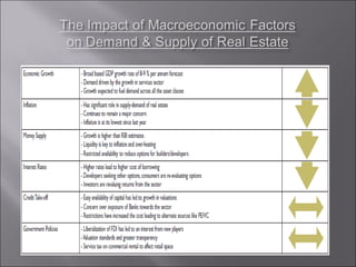 The document discusses the impact of the economic recession on infrastructure and related industries in India. It notes that while infrastructure contribution to GDP declined initially after the recession, sectors are now showing signs of recovery. Major companies report increased orders and profit compared to the same quarter last year, indicating they have adopted more efficient practices post-recession. However, some sectors such as real estate still face challenges while others like cement and steel are growing again.