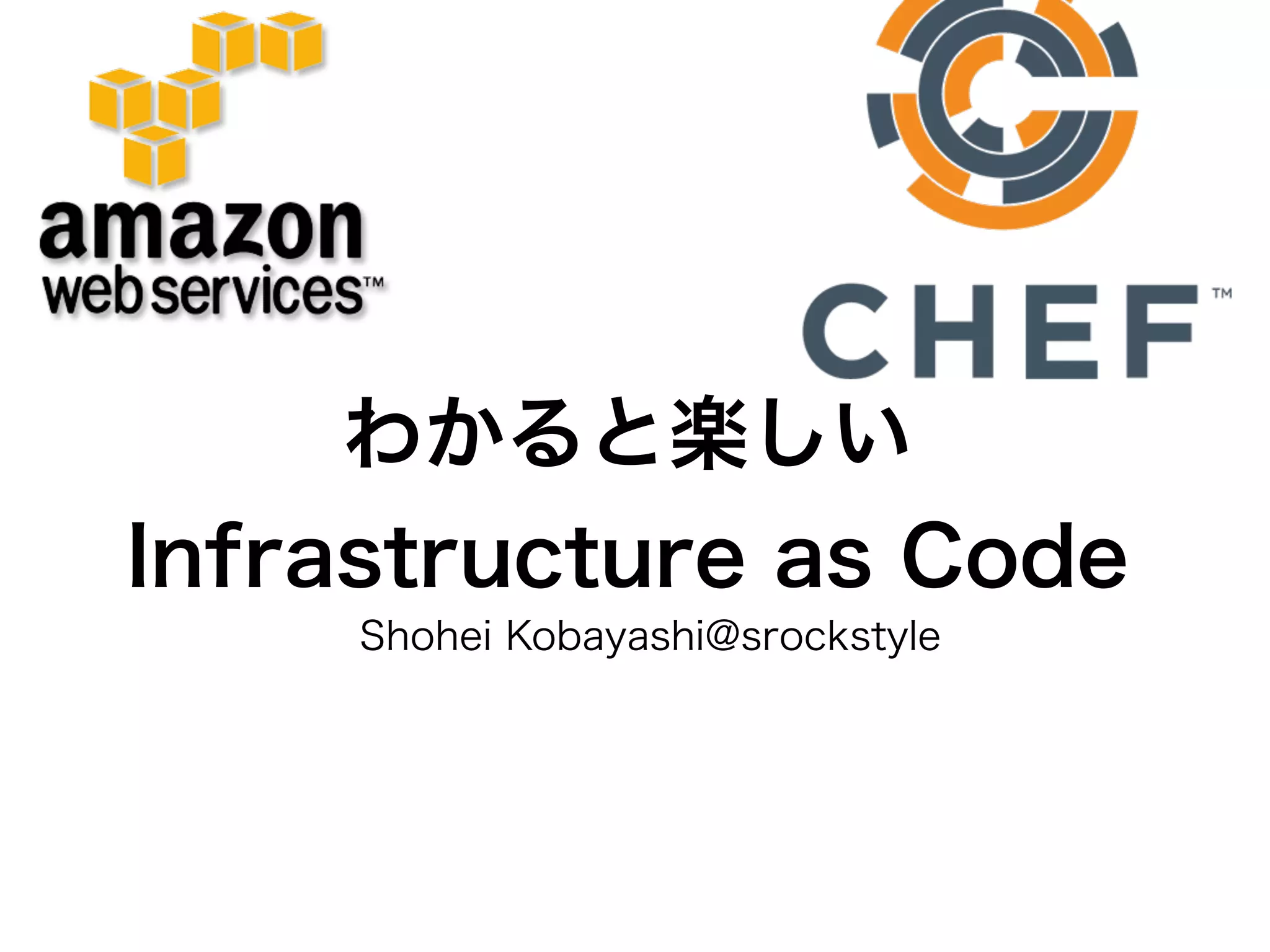 Infrastructure as Codeって? Whats? サーバ・インフラ操作をコードで行うことで効率化し、 ミスを少なくする仕組みのこと。 プログラマブルにサーバ操作できるのは古き時代を知っ ているサーバエンジニアにとっては天国なう。 (コード書けないサーバエンジニアが仕事失うこと以外は)