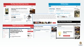 The document discusses DevOps and infrastructure as code. It describes how using infrastructure as code allows organizations to automate infrastructure provisioning and management. This enables continuous delivery of applications and infrastructure through a unified software development pipeline. Chef is presented as a tool that can help implement such a DevOps approach through its support for infrastructure as code, compliance automation, and a shared development workflow.