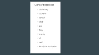 This document discusses using Terraform to manage cloud infrastructure as code. Terraform allows infrastructure to be defined using declarative configuration files that can be treated as code and versioned. It uses a provider model to interact with different cloud APIs to deploy and manage resources. Key features discussed include idempotency, the Terraform graph, modules for abstraction, variables, and linking dependent resources.