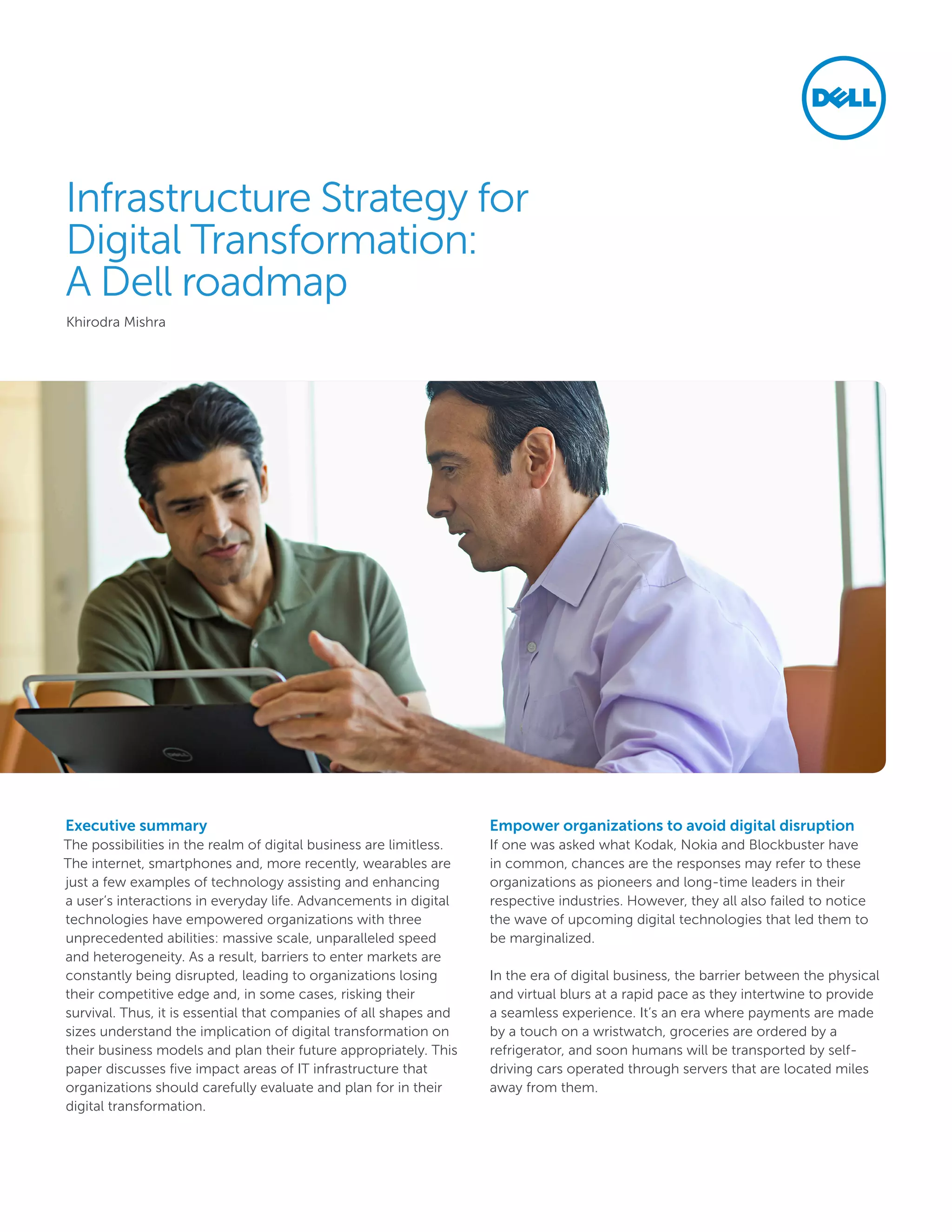 The document discusses five key areas of IT infrastructure that organizations should evaluate and plan for their digital transformations: