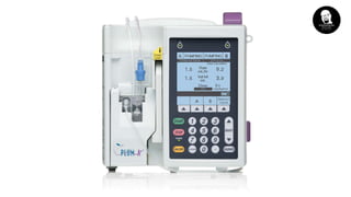 Infusion pumps are medical devices that deliver fluids, medications, and nutrients into a patient's body in controlled amounts. There are various types of infusion, including continuous, intermittent, patient-controlled, and total parenteral nutrition, each suitable for different therapeutic needs. Infusion pumps vary in design and function, including large volume pumps, PCA pumps, elastomeric devices, syringe drivers, enteral pumps, and insulin pumps.