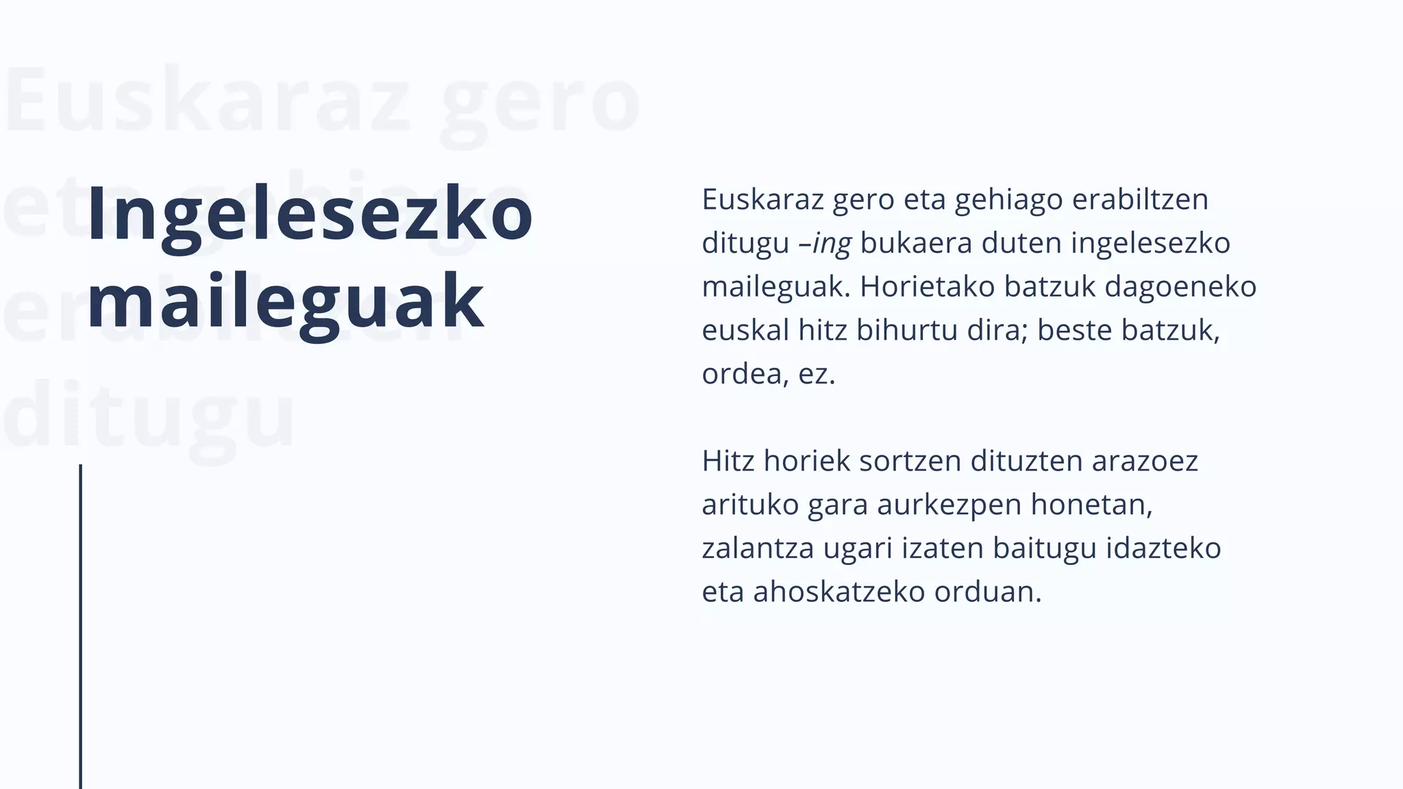 ... eta aipatutako multzo bakoitzeko hitzei modu desberdinean lotzen zaie atzizkia.