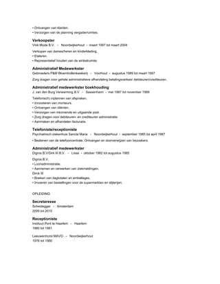 ➢ Zeer ruime ervaring als teamsecretaresse binnen verschillende werkvelden GGZ (18- en 18+)