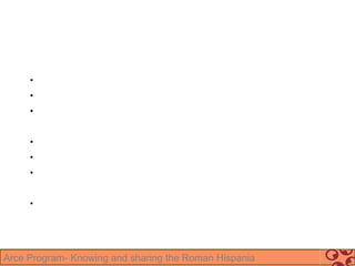 The document is a student project on Roman houses in Hispania for a 1st year social sciences class. It includes summaries of different types of Roman housing structures like the castrum (military camp), domus (family home), urban villa, and insulae (apartment buildings). It also provides images and diagrams to illustrate each housing type. The project was completed by three students, Clara Puerto Sánchez, Clara González Guerrero, and Jenny Collar Lago, as part of a methodology involving group work, research, and creating a PowerPoint presentation to share their findings with the class.