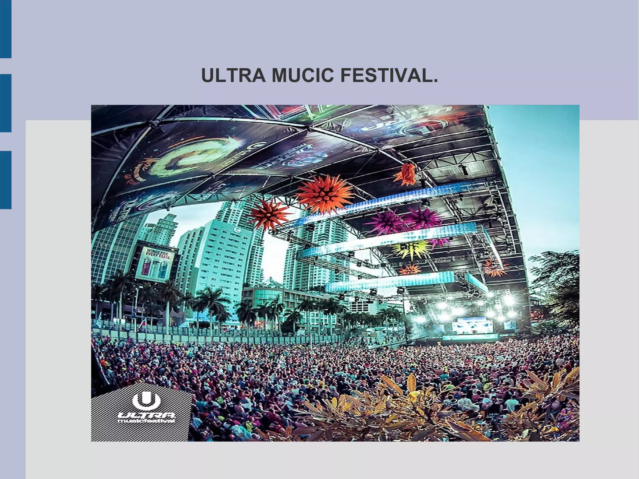 The Ultra Music Festival is an annual outdoor electronic music festival held in March in Miami, Florida. It coincides with the Winter Music Conference, also held in Miami. The festival began as a one-day event in 1999 but has expanded to multiple days. In 2013, it was held over two consecutive weekends for the first time. Notable performers at Ultra include Alesso, David Guetta, and Nicky Romero.
