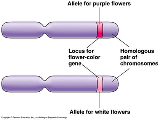 The document discusses genetics and patterns of inheritance. It defines genetics as the study of heredity and how traits are passed from parents to offspring through mechanisms like meiosis and fertilization. It also defines heredity, variation, and mutation. The document then discusses Gregor Mendel's experiments with pea plants in the 1860s, where he studied inheritance of traits like seed shape, pod shape, and flower color. His experiments led to the formulation of Mendel's laws of inheritance - the law of dominance, the law of segregation, and the law of independent assortment.