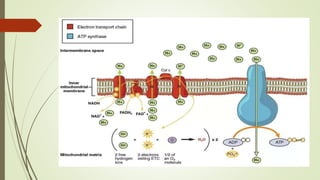 The document discusses inhibitors of the electron transport chain (ETC), which are agents that bind to specific components of the ETC, blocking the transfer of electrons and resulting in the accumulation of reduced forms. It details the four complexes involved in the ETC and identifies specific inhibitors for each complex, such as rotenone for complex I and cyanide for complex IV. Overall, these inhibitors can severely disrupt respiratory processes, leading to a lack of energy necessary for cellular functions.