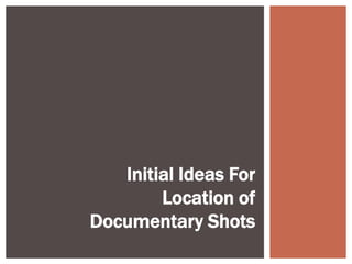 The document proposes several shot ideas for a documentary on knife crime. It suggests filming a reconstruction of a stabbing at the sports field in Solihull Sixth Form College due to the greenery representing a park. An establishing shot of the college sign is also proposed to show the interview location. Additional shots planned are of law books in the college library and the canteen, though noise issues led the canteen to be rejected as an interview site.
