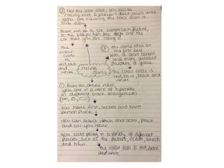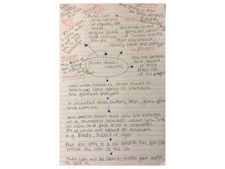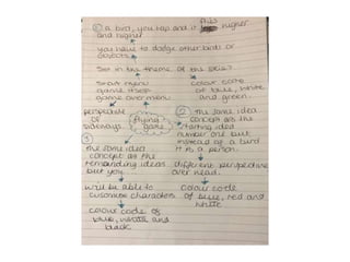 Joy Buck outlines initial ideas for their set brief project, which could be an adventure or action game. They consider combining the two genres. Their strengths include creative ideas, justifying options, and organizing work aesthetically. Joy proposes an action/adventure racing game involving driving around a track with audio and items to engage players. A schedule outlines the project timeline over 5 weeks, including research, proposal, production tasks, and evaluation. A mood board analyzes nature and racing game influences for the project.