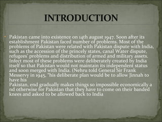 Pakistan faced numerous structural and economic challenges immediately following its establishment on August 14, 1947, including unfair boundary distributions, division of military and financial assets, and ongoing disputes with India, particularly over Kashmir. The country struggled with economic backwardness and a lack of resources, while its administration was built in unfavorable circumstances. Despite these obstacles, the leadership under Quaid-e-Azam emphasized the importance of unity, faith, and discipline in overcoming the difficulties and building a strong nation.
