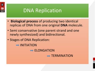 Initiation of DNA replication in eukaryotes involves two steps: 1) formation of a pre-replication complex in late G1 phase involving the recruitment of proteins like ORC, CDC6, Cdt1 and MCM to replication origins and 2) activation of the pre-replication complex in S phase by CDK and DDK kinases which transforms it into an active CMG helicase complex containing MCM, CDC45 and GINS that unwinds DNA and allows replication to begin.