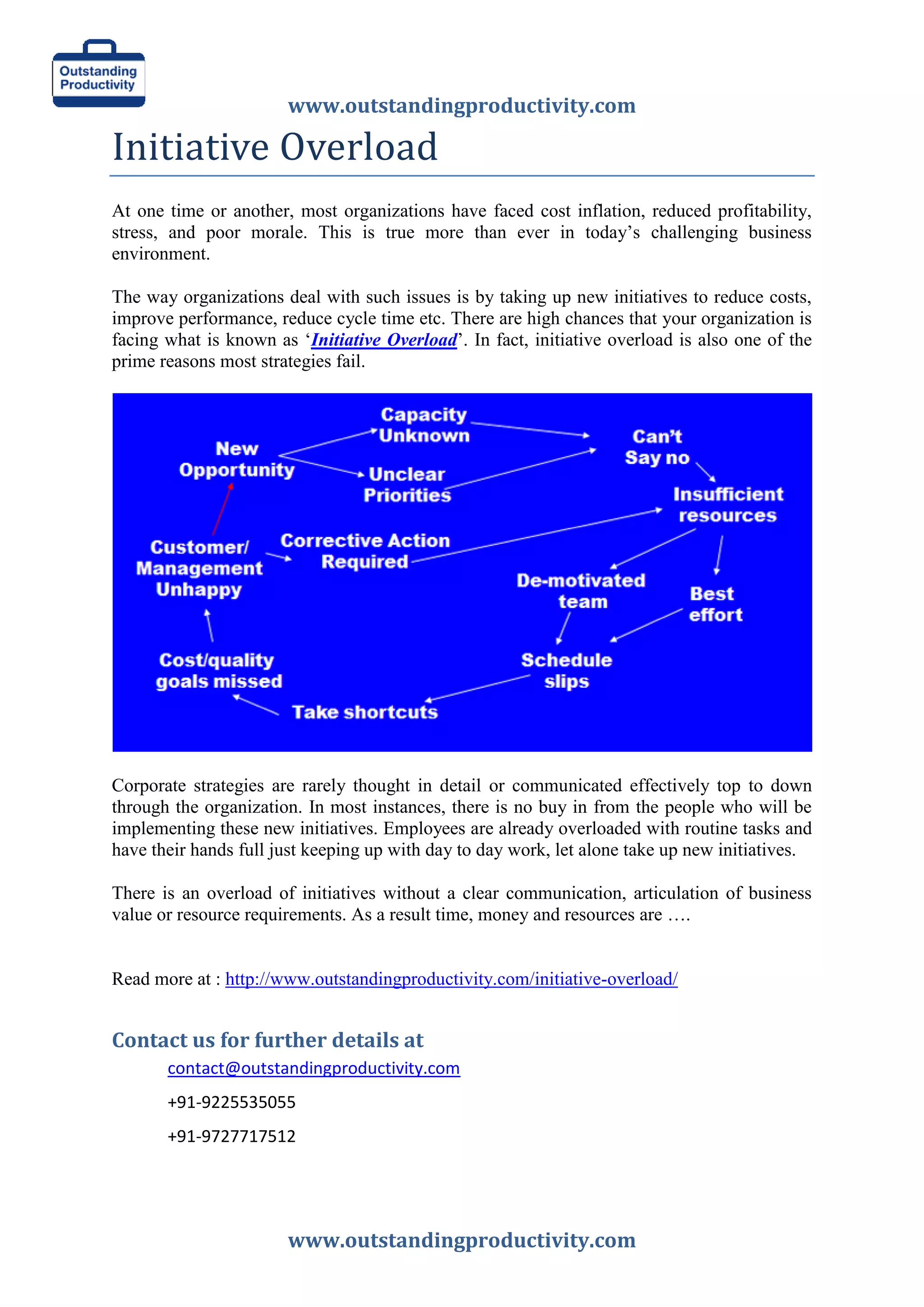 Organizations often experience 'initiative overload' as they tackle issues like cost inflation and reduced profitability, leading to high strategy failure rates. This overload occurs due to inadequate communication and lack of employee buy-in for new initiatives, creating further stress and inefficiency. As a result, resources are wasted on initiatives that lack clear value and direction.