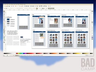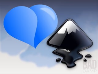 Inkscape is an open-source vector graphics editor that allows users to create scalable drawings, like logos and icons. The document discusses Inkscape's capabilities for creating mockups and wireframes, including basic tools and techniques in Inkscape as well as resources for Drupal templates, jQuery themes, and downloadable wireframing components from sites like Balsamiq. It concludes with an offer to demonstrate Inkscape and take questions.