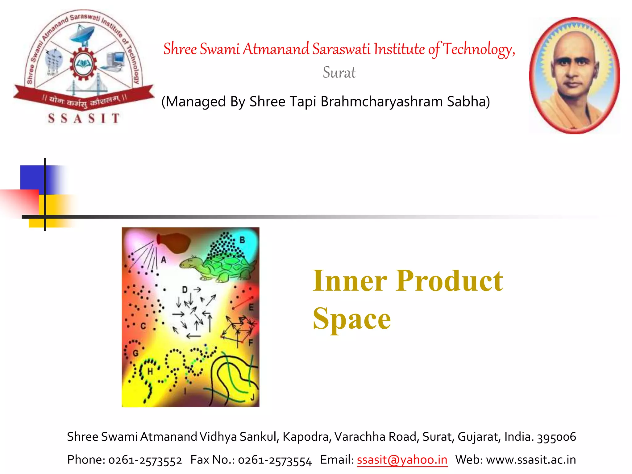 (1) The document discusses inner product spaces and related linear algebra concepts such as orthogonal vectors and bases, Gram-Schmidt process, orthogonal complements, and orthogonal projections.