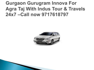 This document promotes a 24x7 travel service in Gurgaon offering Innova car rentals for trips to Agra Taj Mahal. It provides contact information for inquiries and mentions different vehicle options, including Innova 6+1 and Innova 7+1 configurations.