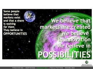 1. The document discusses various aspects of innovation including identifying bottlenecks, creating opportunities, achieving focus, engaging commitment, making ideas possible, and making innovations happen through proper project management.