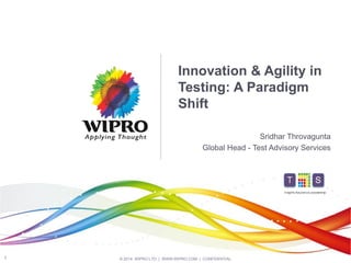 The document discusses a paradigm shift in testing due to innovation and agility, emphasizing the importance of adapting to technological advancements such as the Internet of Things and big data. It highlights the significant impact of poor software quality on businesses, along with trends toward centralized testing practices that enhance efficiency and value creation. It concludes by challenging the perception of testing's relevance and advocating for its evolution into a more strategic role within organizations.