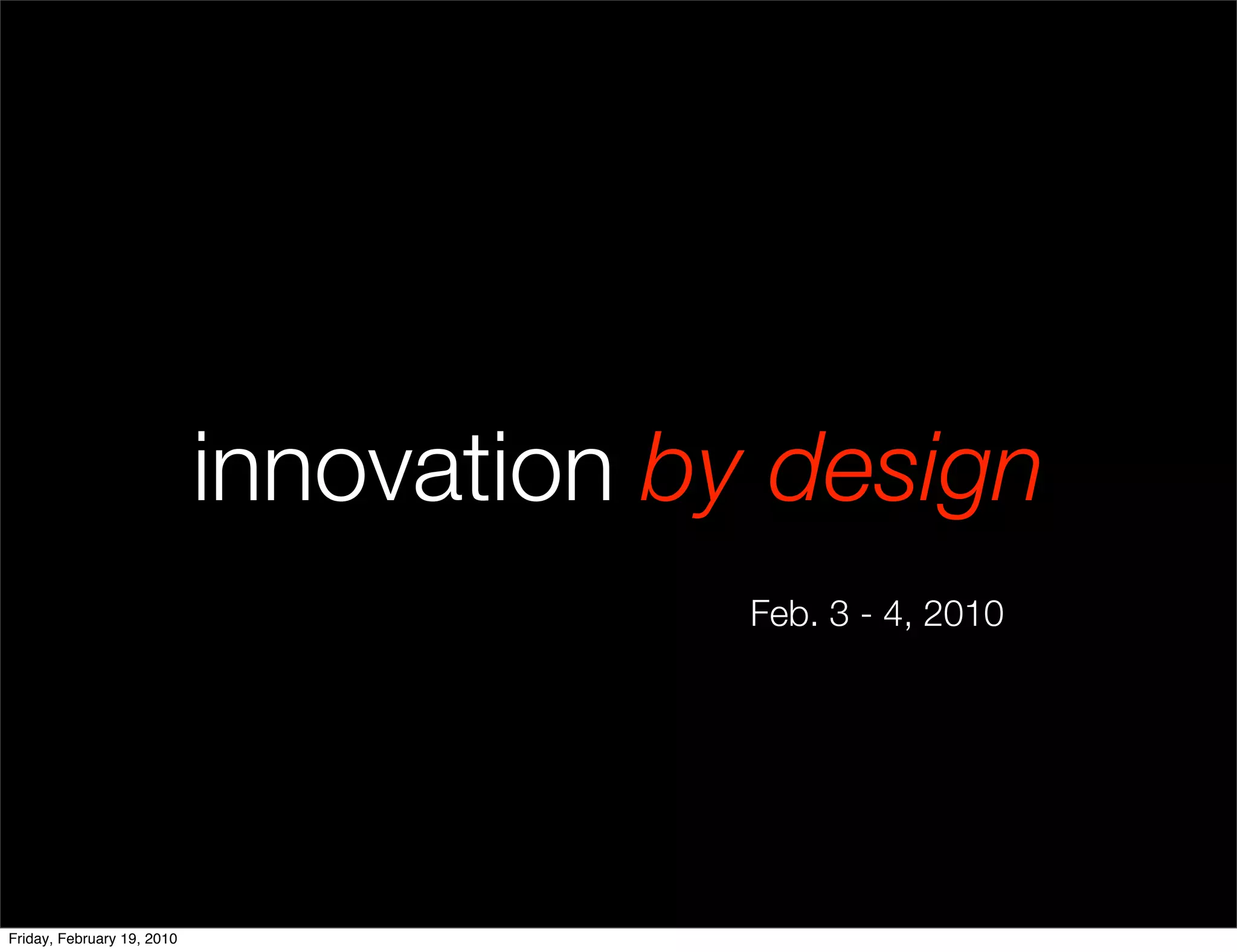 The document discusses innovation through design and covers three main ideas: designing attitude by focusing on process and outcomes rather than definitions, designing methods using various tools and techniques, and designing organization by structuring problems and embedding innovation into a company's culture.