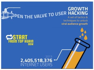 This document discusses innovation hacking, which combines growth hacking, lean startup, and accelerator models to help companies gain exposure and be innovative. It provides examples of how companies like Dropbox, Airbnb, and Atlassian have used these techniques. The document advocates that companies leverage innovation hacking by locally incubating ideas, innovating their brands, and accelerating globally to stay ahead of competitors.