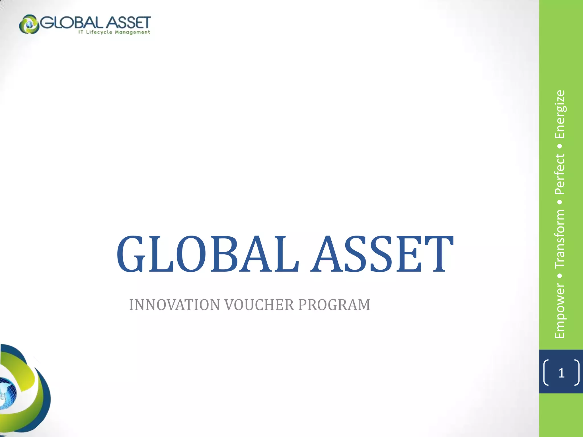 The Innovation Voucher Program by Global Asset allows customers to generate vouchers from the company's asset recovery programs that can then be used towards services like managed services, technical support, and new product purchases. Customers can choose between an asset purchase program or consignment program. Global Asset then handles the logistics of asset recovery, refurbishing, reselling, and provides reporting on voucher balances generated from the process. The goal is to create value from retired assets and provide funding sources for customers' IT needs.