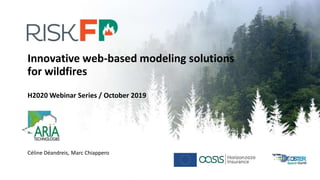 The document discusses the development of RiskFP, a geospatial web-based modeling platform designed to help manage fire risk for forest managers, investors, and insurers. It features four main modules that include risk mapping, seasonal forecasts, realistic disaster scenarios, and analysis of the wildland-urban interface. Various testing locations around the world demonstrate its application and effectiveness in predicting and managing wildfire impacts.