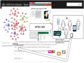 The document discusses using social media tools to engage students more effectively in learning. It provides examples of how the instructor incorporated social media like wikis, blogs, and photo sharing in two Spanish language courses. Surveys of students' digital skills showed variation within generations. Strategies included adapting assignments, providing technology choice, and discussing privacy/copyright. Benefits were more student control, personalized learning, and reflecting on digital literacy issues. Limitations included tool malfunctions and not all students addressing discussed topics.