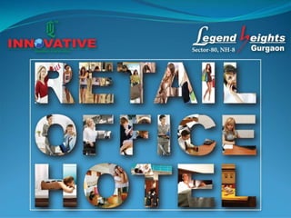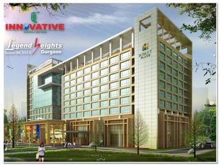 The document outlines a mixed-use development project located in Sector 80, Gurgaon, featuring a Hyatt hotel, retail, and office space with various amenities including a centrally air-conditioned, LEEDS gold-rated building. It is strategically situated near key infrastructure such as the Delhi Metro and an industrial hub, promising an assured return on investment. The area is rapidly growing, surrounded by luxury hotels and residential developments, making it an attractive investment opportunity.