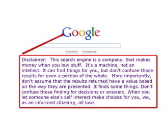 This document discusses how technology is changing the ways students interact, consume information, and learn. It notes that while technology is ubiquitous, it does not necessarily lead to digital or information literacy. It argues that educators need to help students take control of technology and be critical consumers of information. The document promotes using participatory and student-centered and technologies in teaching to engage students and help them develop important literacy skills for a digital world.
