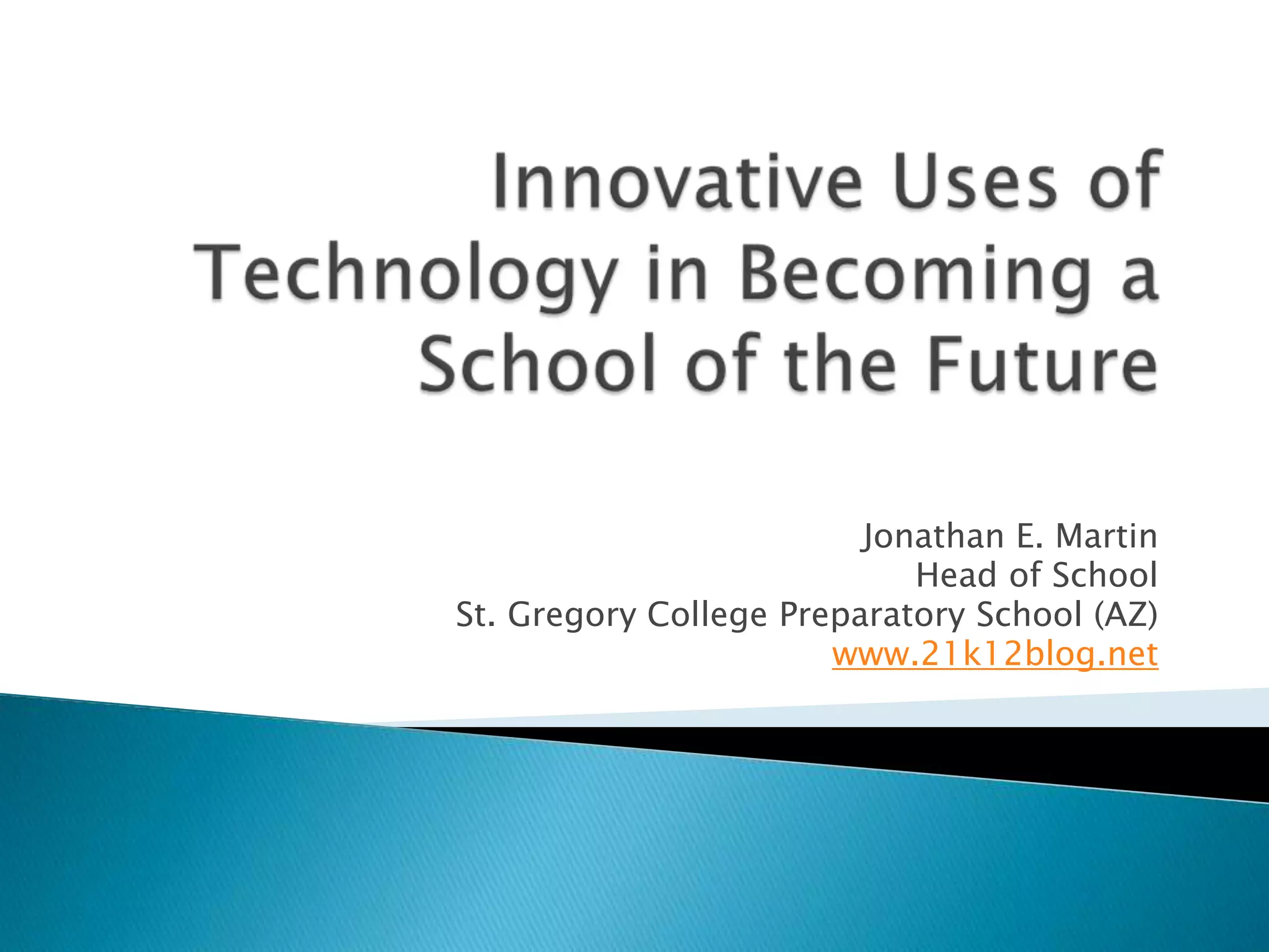 This document discusses the use of technology in assessments and learning at St. Gregory College Preparatory School. It focuses on 1) technology-based assessments that measure higher-order skills, 2) emphasis on key skills like creativity, 3) collaboration between networked educators, 4) empowering digitally savvy students, and 5) project-based learning where students create and share multimedia content. Formative assessments using tools like Khan Academy and computer-adaptive testing are highlighted. The document advocates for open computer testing and digital portfolios to drive 21st century instruction.
