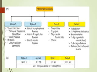 This document discusses inotropes and vasopressors used to treat shock. It defines inotropes as agents that increase myocardial contractility and cardiac index, while vasopressors increase vascular tone and elevate mean arterial pressure. The main types discussed are catecholamines like dopamine, dobutamine, adrenaline and norepinephrine. Phosphodiesterase inhibitors and vasopressin are also mentioned. Clinical indications, dosages, and hemodynamic effects are provided for various drugs. The goal of treatment is to perfuse tissues and oxygenate the body through managing preload, contractility, afterload and optimizing cardiac output and systemic vascular resistance. Early recognition and treatment of shock, along with