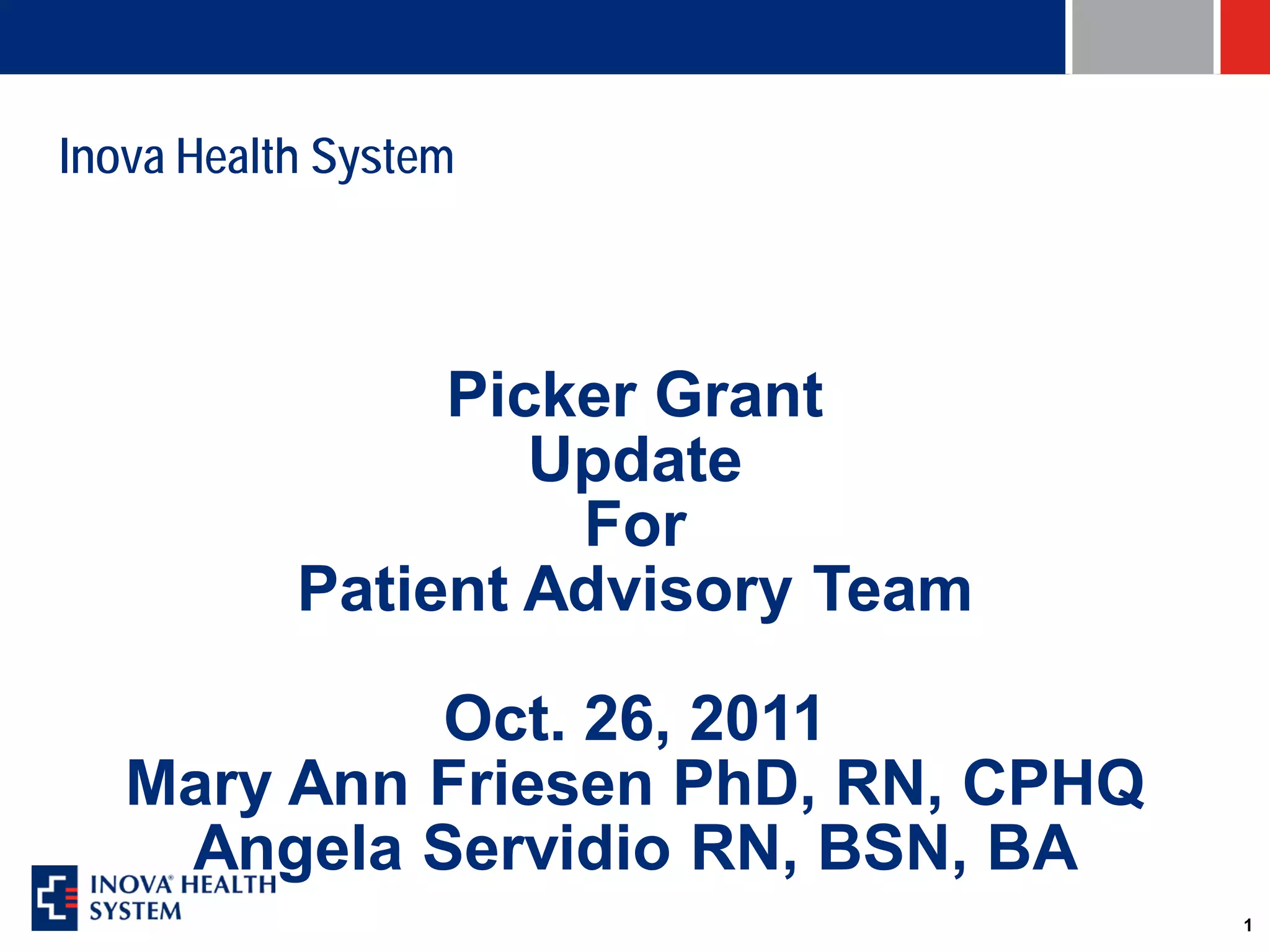 This document provides an update on Inova Health System's Picker Grant project to improve patient handoffs. It discusses: