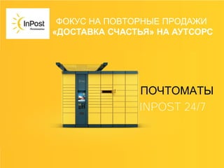 Документ описывает возможности использования почтоматов InPost для повышения уровня обслуживания клиентов и увеличения продаж для интернет-магазинов. Основное внимание уделяется важности предоставления разнообразных способов доставки, включая возможность 24/7, для повышения удовлетворенности покупателей и уменьшения отказов от покупок. Также рассматриваются советы по снижению расходов на возвраты и улучшению условий доставки.