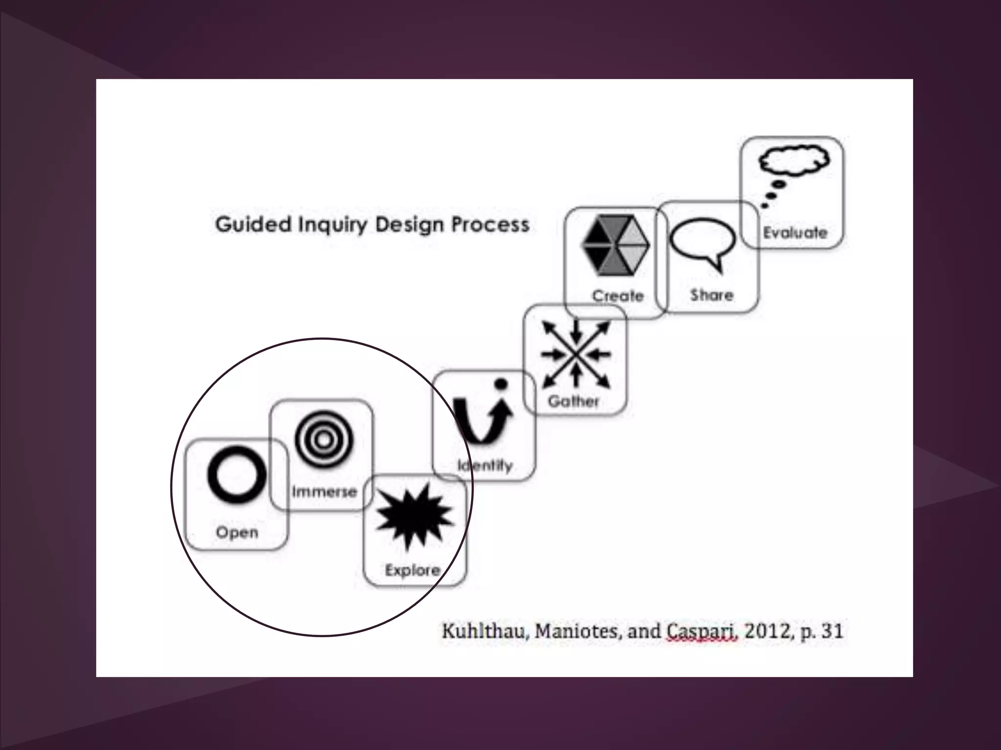 The document discusses using the Question Formulation Technique (QFT) to promote inquiry-based learning. It explains that QFT is a structured process where students generate their own questions about a topic. The technique helps students improve higher-order thinking skills like divergent, convergent, and metacognitive thinking. The QFT process involves focusing questions, producing questions without judgment, categorizing questions, prioritizing questions, and reflecting. When used in information literacy lessons, QFT can help students develop authentic questions that fuel curiosity and deeper learning.
